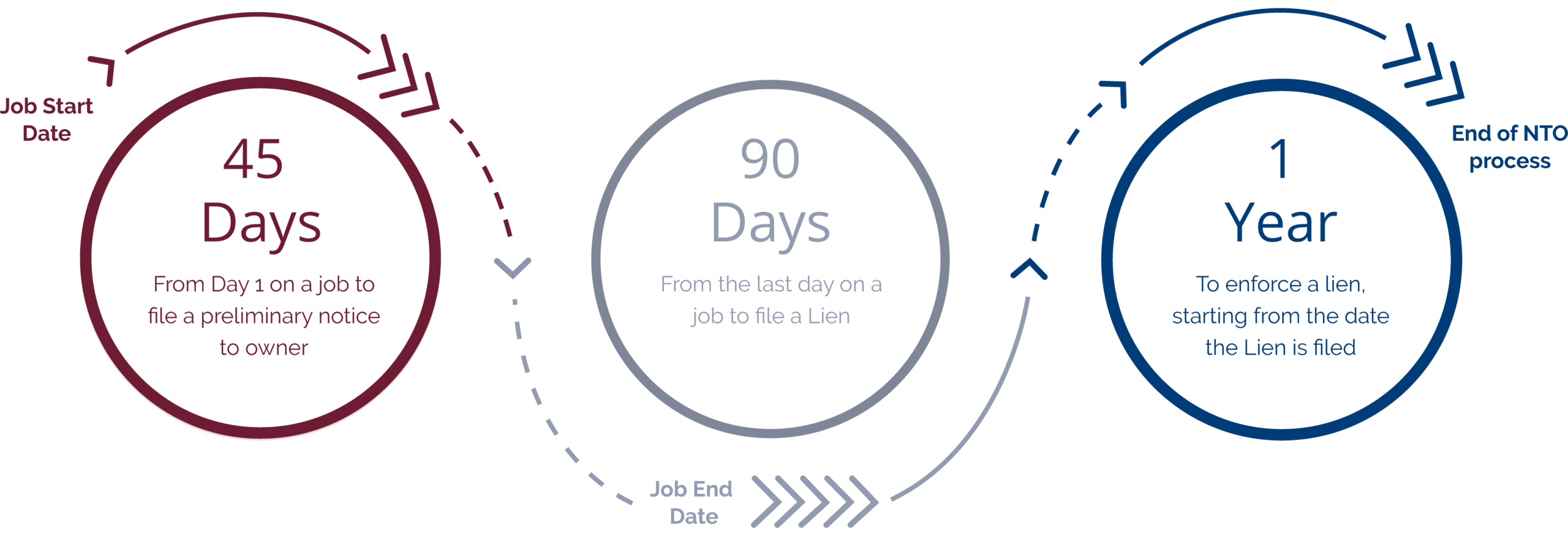 Florida’s lien laws are strict—and missing just one deadline can mean losing your lien rights. ZoomLien makes it easy by providing a graphical timeline of the key steps and deadlines you must follow to preserve and enforce your lien. We don’t provide legal forms, but we guide you through the entire process, from Notice to Owner through Claim of Lien and enforcement.